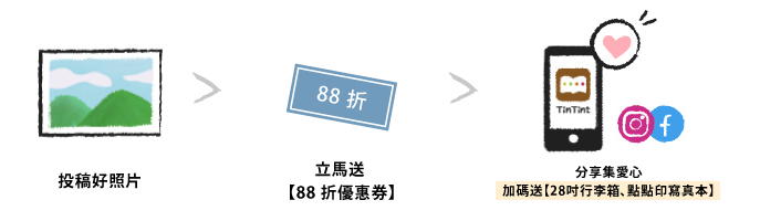 投稿作品愛心數前 1~3 名抽 1 位,獲得「28吋時尚寬把行李箱 - 矮袋鼠聯名款」(價值 NT$ 1,999)乙台