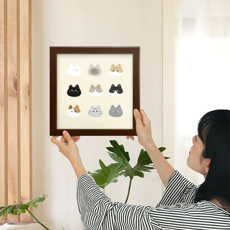 這幅作品裡有多隻不同花色的貓咪,適合掛在牆上,希望可以讓生活空間也變得可愛!
